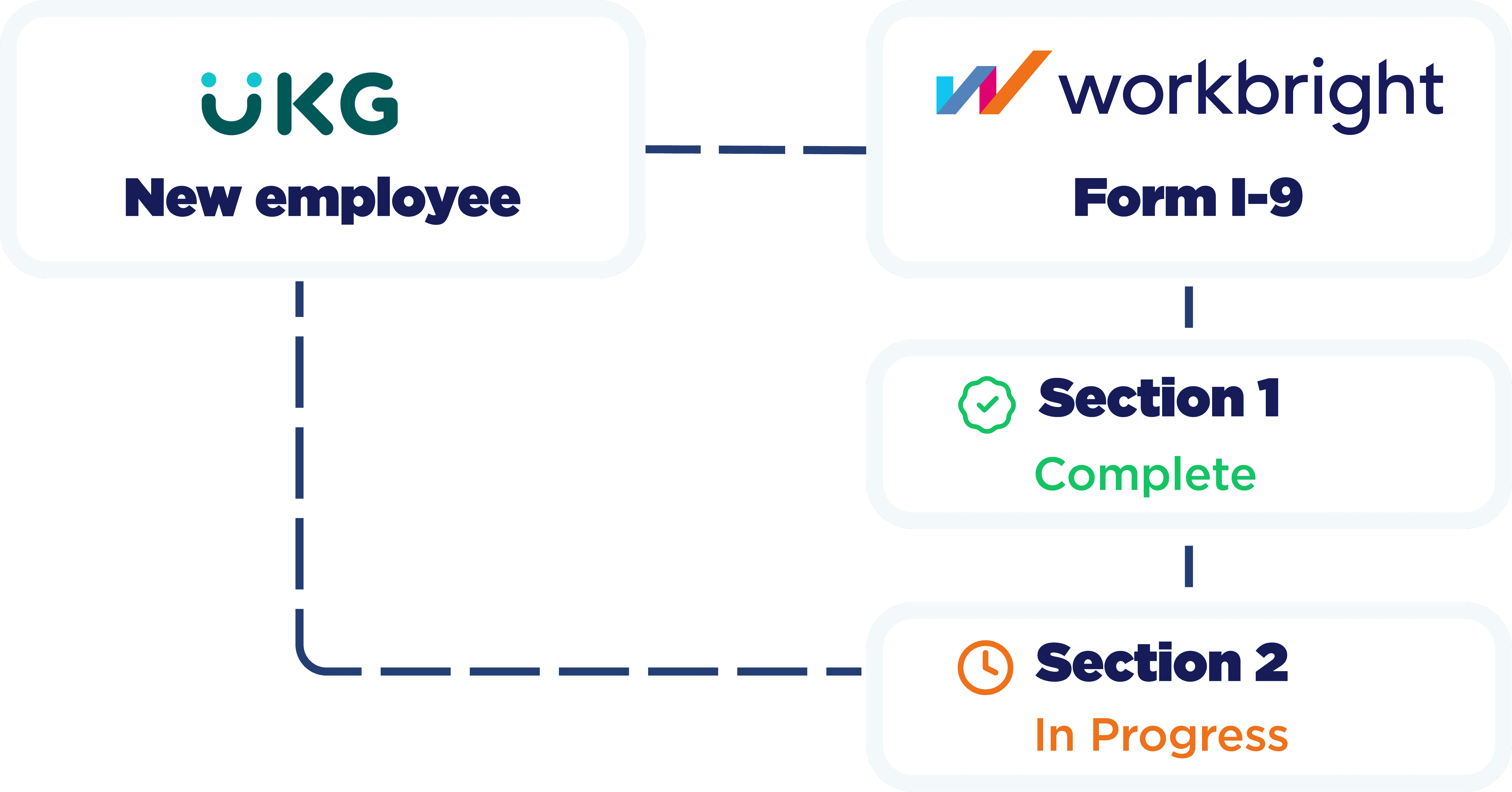 WorkBright manages the entire I-9 process while UKG stays up to date automatically.